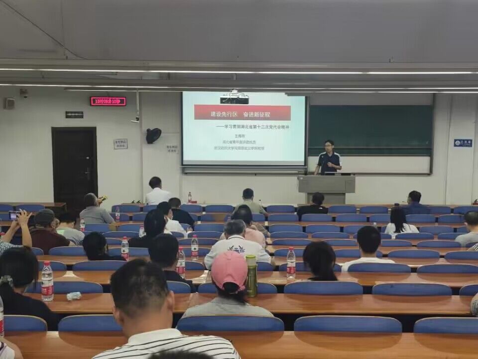 王海燕以“建设先行区 奋进新征程”为题宣讲了省第十二次党代会精神。他围绕过去五年的工作、准确把握新发展阶段湖北面临的新形势新任务、完整准确全面贯彻新发展理念、加快建设全国构建新发展格局先行区、坚持和加强党的全面领导,切实提高建设全国构建新发展格局先行区的能力和水平等方面对湖北省第十二次党代会报告的主要内容进行全面深入的解读。王教授结合湖北省高校的人才优势,分析我们在服务地区发展、产业升级和科技创新等方面的贡献。
