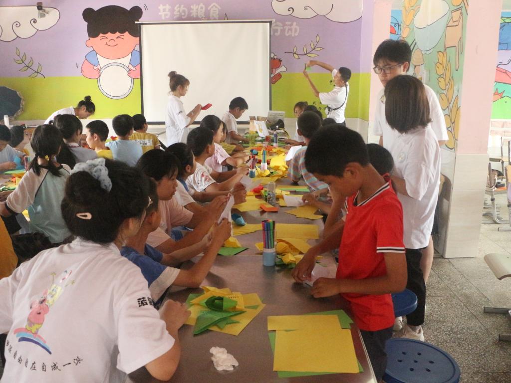 孩子们对我讲的内容似乎很感兴趣,我说,“我们一起来折纸好不好呀?”“好!”他们的声音响彻云霄。我十分激动,他们给了我很多自信,拉近了彼此的距离。每当作品完成后,孩子们总是开心的笑,有个活跃的小男孩,直接冲到教室前面,给我竖起了大拇指,我的付出得到了肯定。