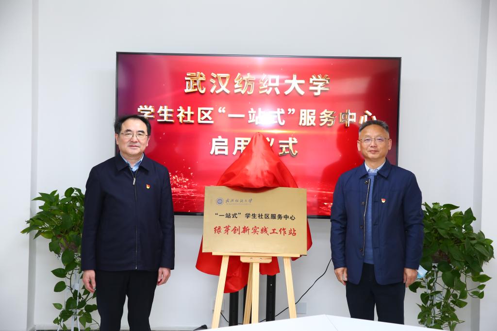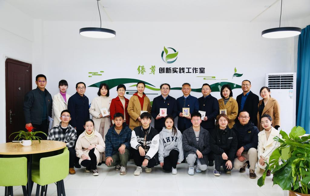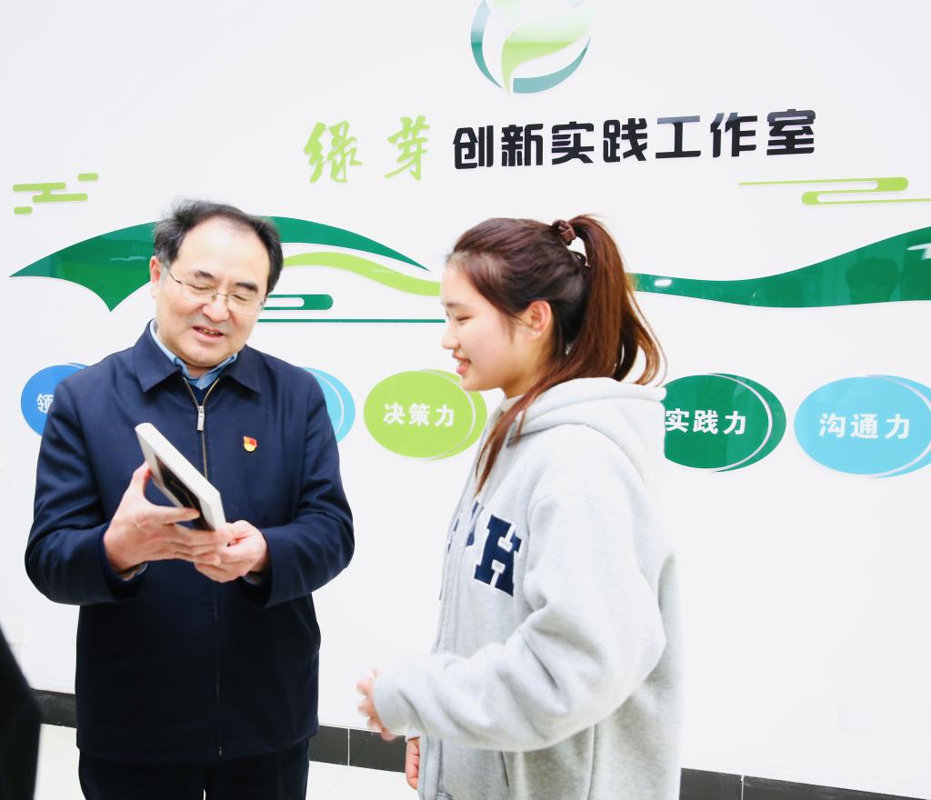 田辉玉和罗锦银共同为“绿芽创新实践”学生服务驿站揭牌,校领导一行参观走访了“一站式”学生服务驿站党建服务区、创新实践基地、阳光学习走廊、社团文化营地等功能区域,并对正在进行挑战杯备战的李东亚师生团队的科创活动进行了指导。